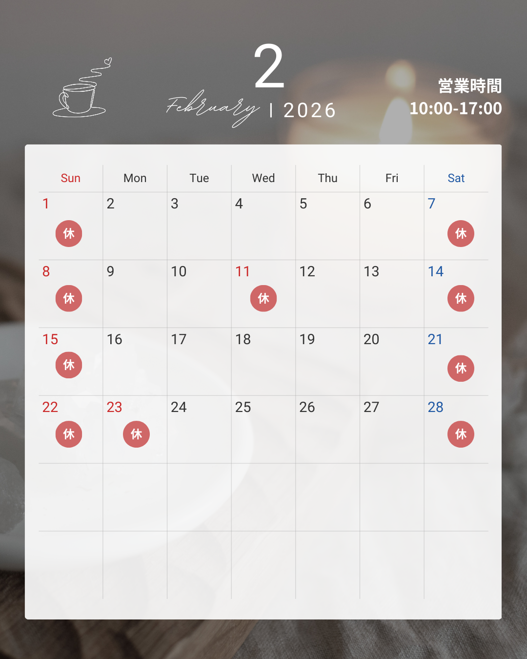 2月の営業カレンダー